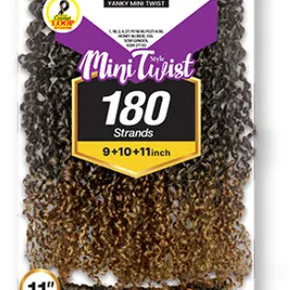 YANKY MINI TWIST 9″10″11″ CROCHET V9.10.11 INCHES BRAID V-SHAPE FINISH STYLE 180 STRANDS MINI TWIST (CLEAN FINISHED) CROCHET BRAID / LOOP APPLICATION SOFT END GOOD CURL RETENTION NO TANGLE /...